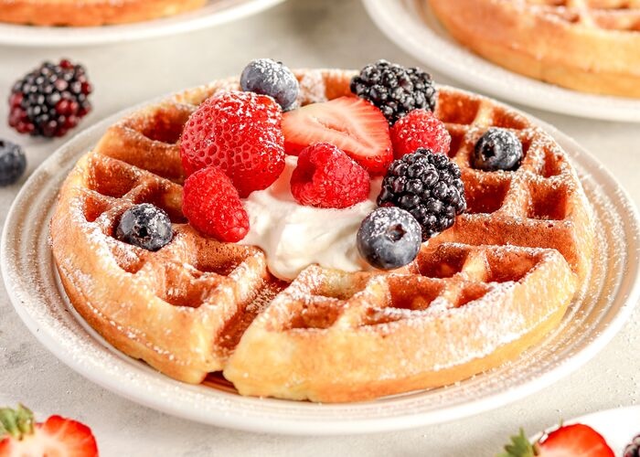 - Waffles are similar to pancakes, but lighter, airier and have pockets perfect for holding any toppings you choose to add. You will need a waffle iron as well.