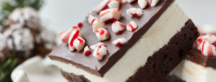 Don’t want to cut your fudge at all? No problem. Use small, disposable aluminum pans, a decorative doily or two, and a bit of ribbon to tie up an entire pan of Peppermint Bark Brownies as a beautiful gift your loved one is free to carve into at their leisure.