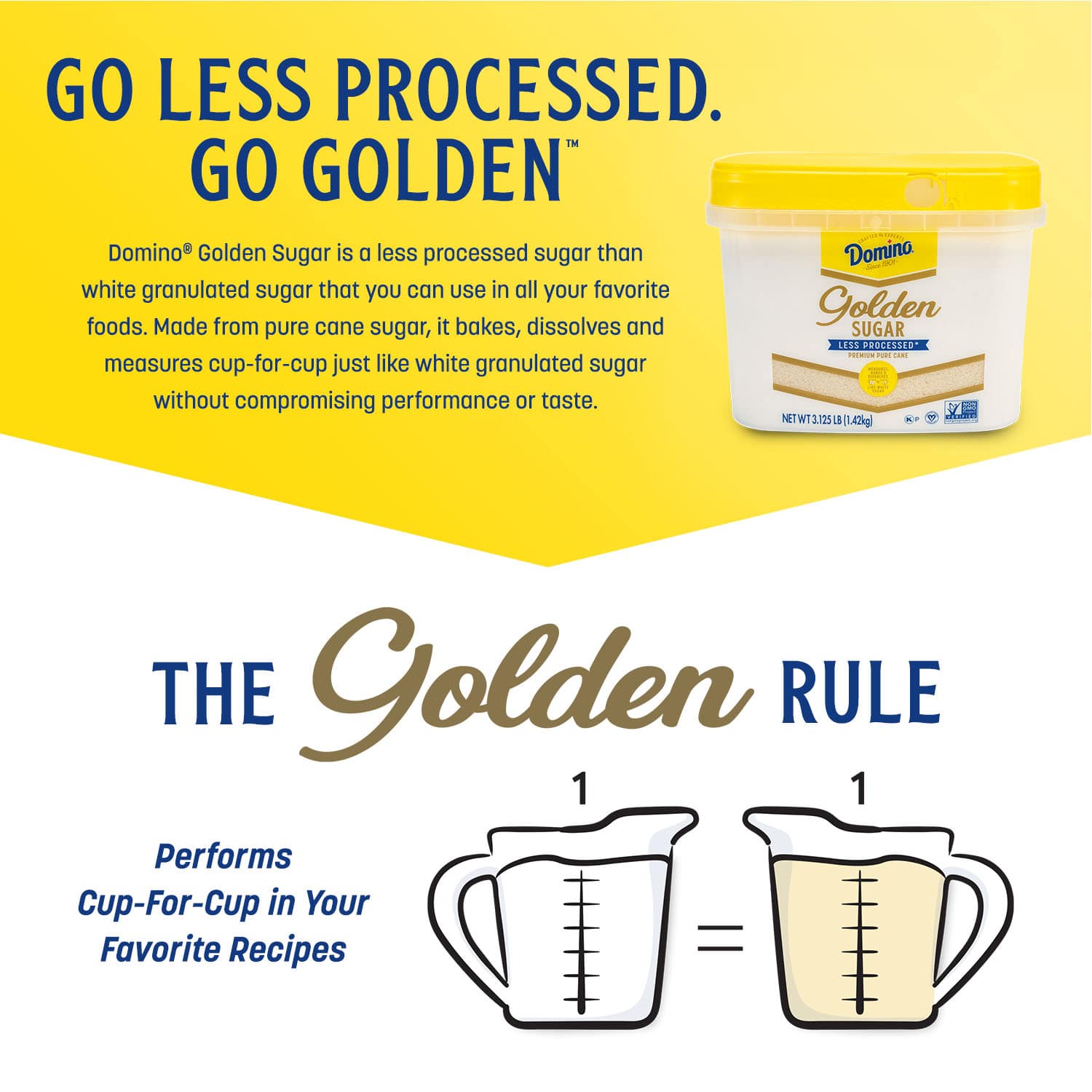Domino® Golden Sugar is available near you, and you can substitute it cup-for-cup anywhere you used to use white granulated sugar. It bakes and dissolves just the same, whether you’re sweetening a drink or crafting a cake, and adds a boost of flavor that will make you prouder than ever of your culinary creations.