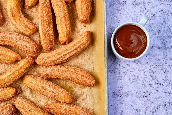 El azúcar granulada Domino® en el Easy Baking Tub, combinado con canela y una salsa de chocolate española para mojar, hacen que estos postres fritos sean irresistibles.