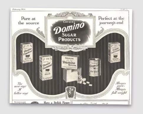 For over a century, Domino® Sugar has been a high-quality ingredient trusted by cooks to perform perfectly in their favorite foods. These products have been at the heart of beloved recipes passed down through generations, and their packages have filled the pantries of millions. As we introduce the next chapter in the Domino® Sugar story, we take a short walk through the history of the brand in honor of all those who’ve helped us craft so many quality products along the way.