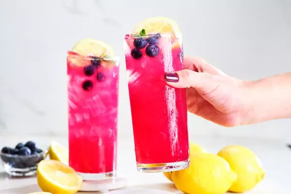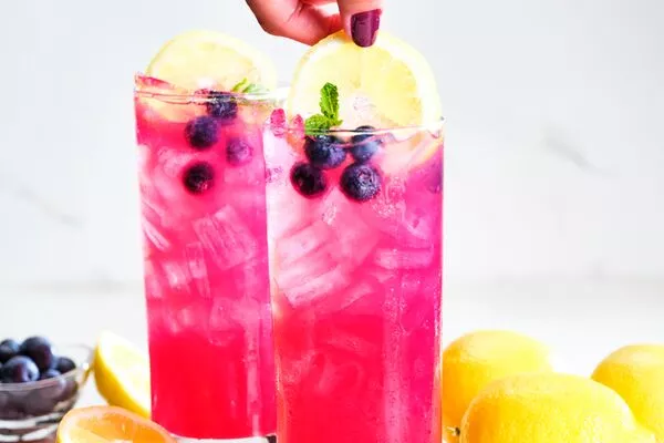 Prepare the lemonade. In a large pitcher, combine the water, lemon juice, blueberry syrup, sugar, and salt. Mix well until all the sugar is dissolved. Pour into ice-filled glasses. Garnish with lemon slices, blueberries, and mint.