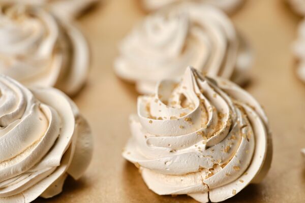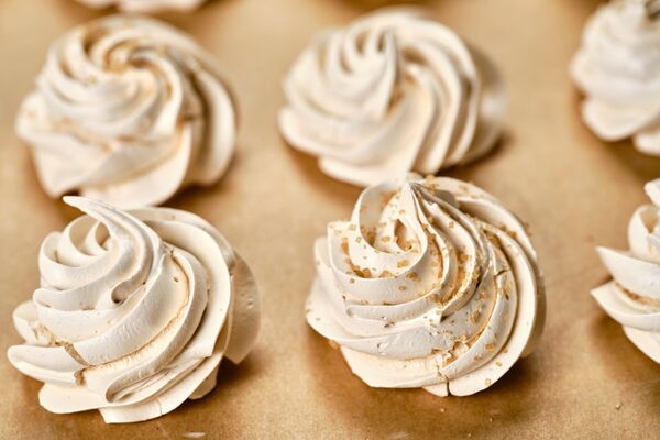Carefully remove from the heat. Using an electric mixer, beat the mixture at high speed for 8-10 minutes. Transfer the meringue into a piping bag fitted with a star tip. Pipe 12 meringues per baking sheet. Sprinkle turbinado sugar on top of the meringues if desired. Place in the oven and bake for 1 hour. Turn off the oven and allow the meringues to rest inside the oven for one hour. Remove from oven and enjoy.
