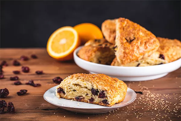 - Serve scones with whipped butter and orange marmalade.