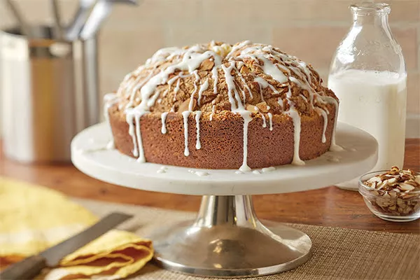 In a small bowl, stir together powdered sugar and milk. Adjust the amount of milk until the glaze has a drizzling consistency. Drizzle over cake and serve.