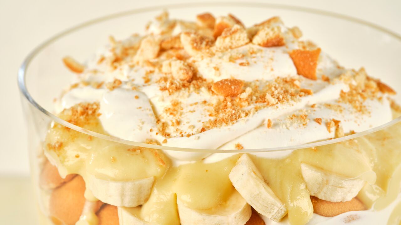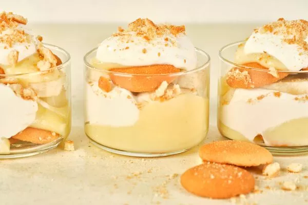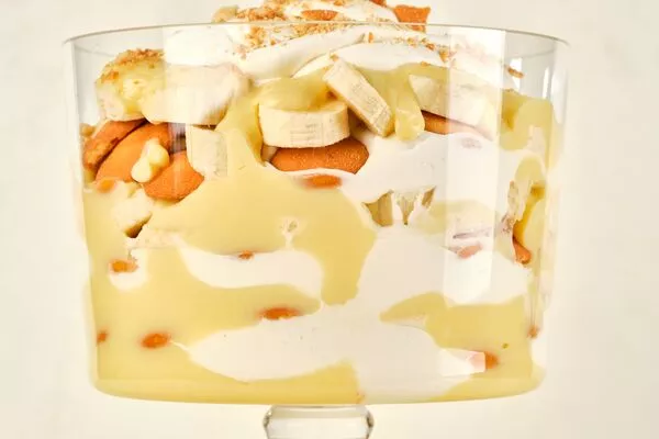 Using a trifle dish or a large bowl, assemble the pudding by layering vanilla pudding, whipped cream, cookies, and bananas. End the layering with whipped cream. Cover and refrigerate for 2 hours. Garnish with crumbled cookies before serving.