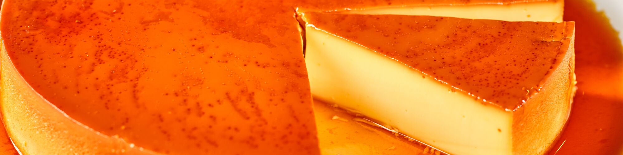 Cuando estés listo para servir, pasa un cuchillo pequeño y afilado alrededor del flan. Coloca un plato de servir encima del molde y, con cuidado pero rápidamente, voltea el flan sobre el plato. Levanta con cuidado el molde. Sirve.