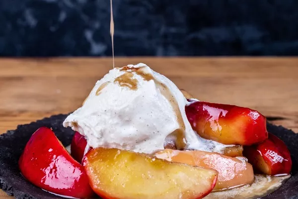 - Serve apples with vanilla or rum raisin ice cream as a dessert. For breakfast, serve over waffles or pancakes.