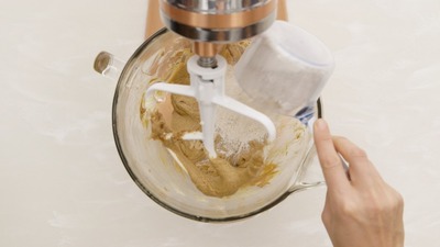 In a large mixing bowl, cream sugar and butter using an electric mixer. Scrape down sides of bowl as needed. Add molasses and egg. Mix, scraping down sides with each addition.