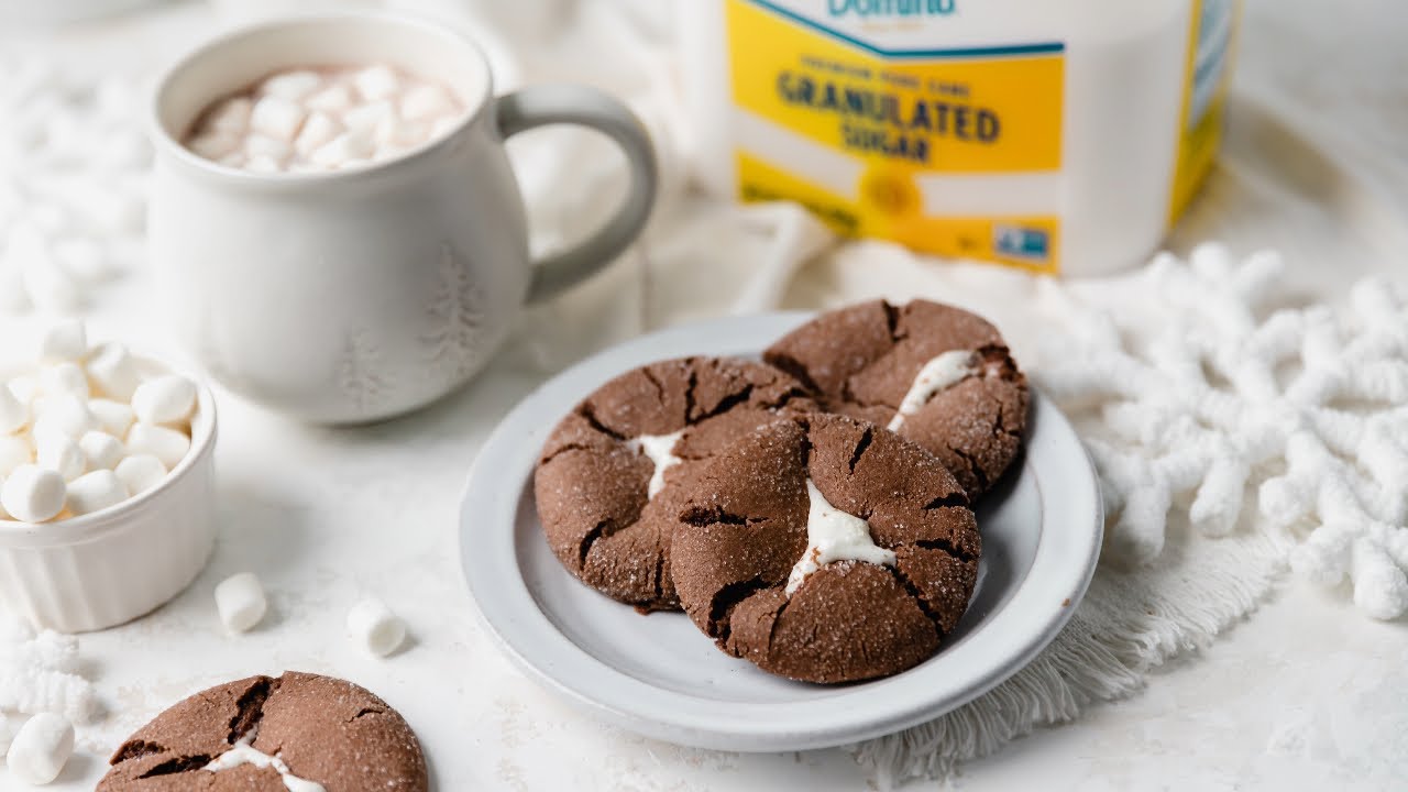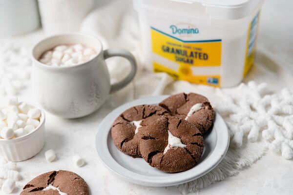 Use a medium cookie scoop to portion the dough. Use your thumb to make an indentation in each ball, then stuff with half of a marshmallow. Roll the dough balls in your hands until the marshmallow is almost fully covered with dough. Finish by rolling each ball in additional Domino® Granulated Sugar until fully coated and place on the baking sheet at least 2 inches apart.