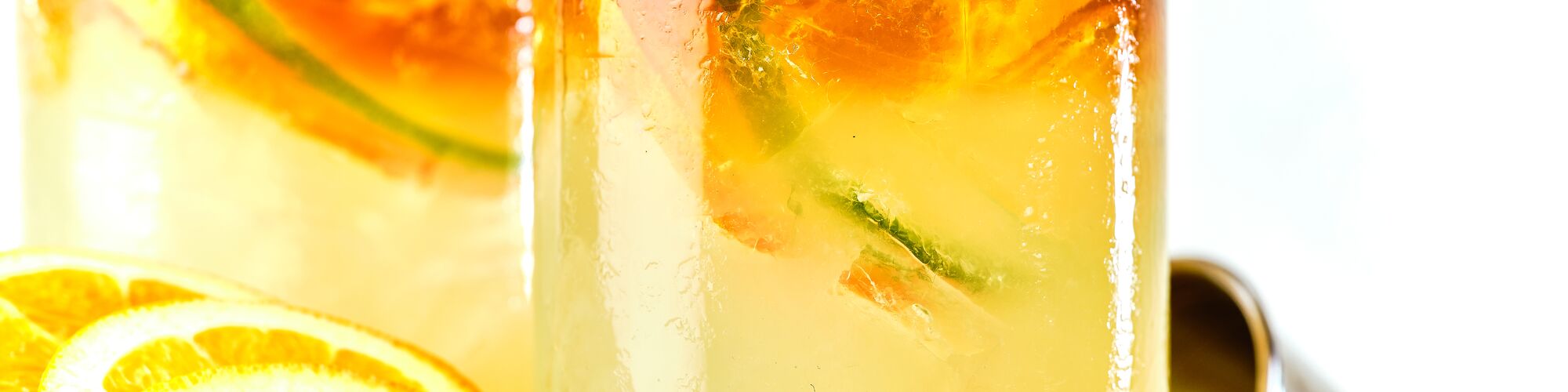 - Lime slices, orange slices, cherries, mint leaves as garnish