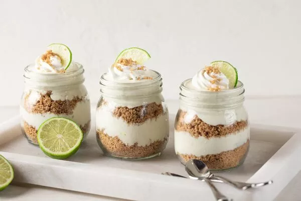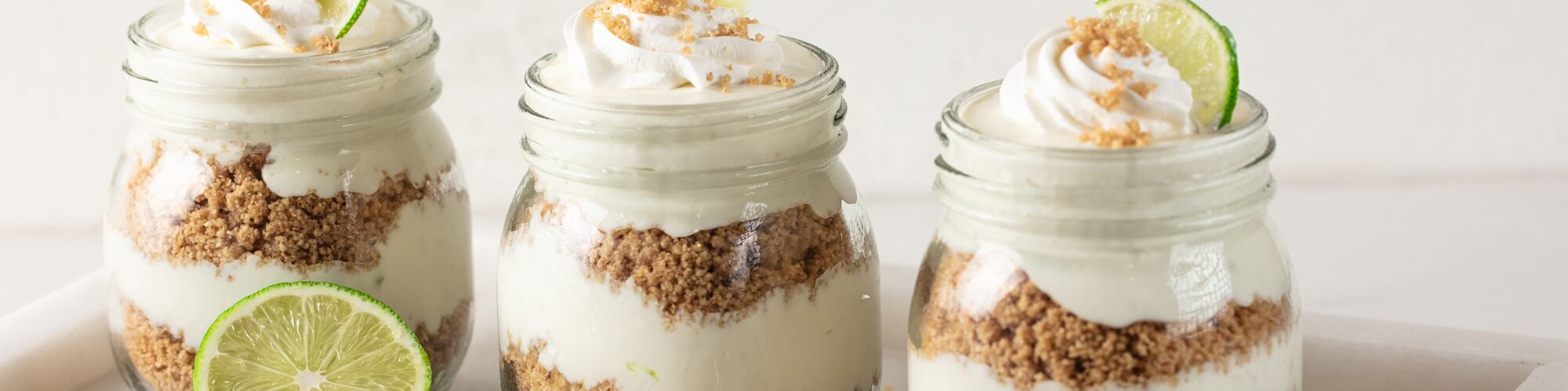 • Freeze your key lime pie jars for an extra refreshing dessert. Top with fresh whipped cream and garnish with lime slices and graham cracker crumbs.