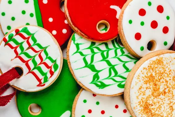 If you do not have an ornament shaped cookie cutter, use a round cookie cutter and cut a small hole at the top using a straw.