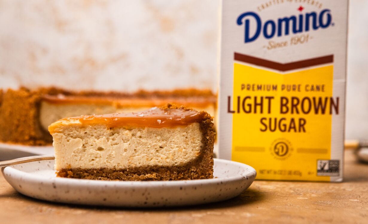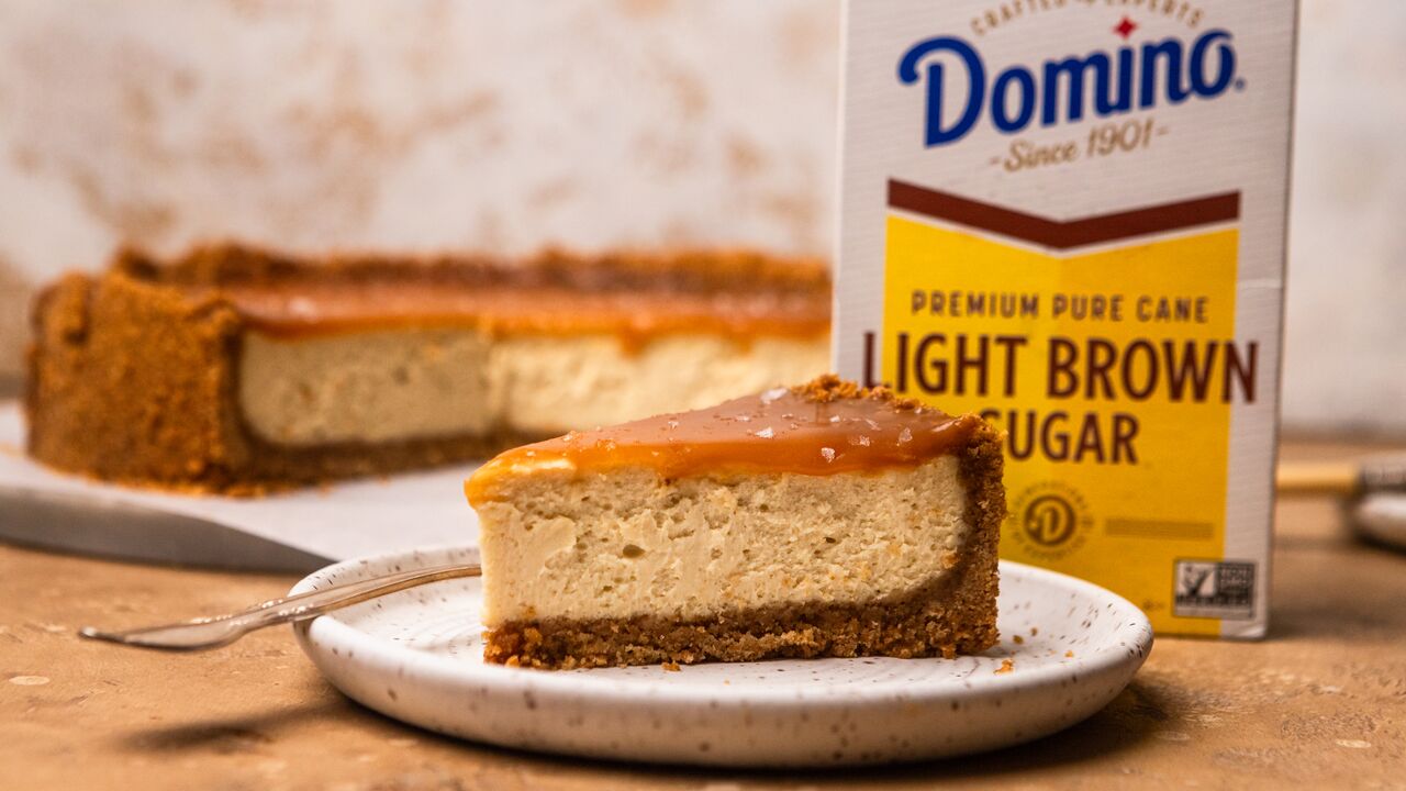 Preheat the oven to 350°F and line a 9-inch springform pan with parchment paper. Set aside. Pulse the graham crackers to a fine crumb in a food processor or crush by hand. Then stir the graham cracker crumbs, Domino® Light Brown Sugar, and salt together in a large mixing bowl. Mix in the melted butter.