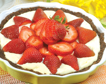 Arrange strawberries over cream cheese filling. If desired, garnish with whipped cream and mint leaves.